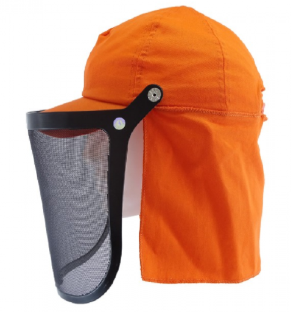 Capuz de segurança tipo boné confeccionado em tecido 100% algodão com protetor de nuca. Possui regulagem na parte traseira do capuz para ajuste e com tela em náilon frontal.