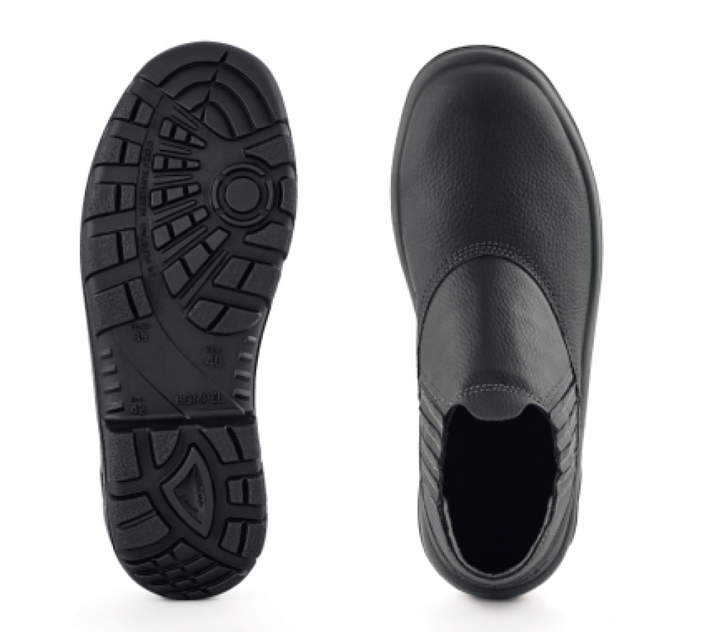 Calçado ocupacional para uso profissional, tipo botina, cabedal confeccionado em couro vaqueta, fechamento em elástico, com biqueira estrutural em polipropileno (PP) ou de Conformação , palmilha de montagem isolante montada pelo sistema strobel, palmilha interna removível, solado em poliuretano bidensidade injetado direto no cabedal, para uso eletricista.