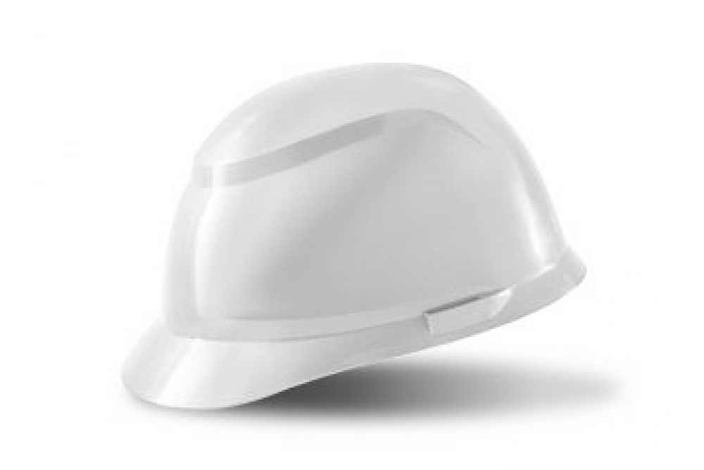 Descrição: Capacete de segurança, tipo I, com aba frontal, Classe G (Geral), casco injetado em polietileno de alta densidade com 1 nervura, possui fenda lateral, suspensão em polietileno de baixa densidade e fixada ao casco através de seis pontos de encaixe, com regulagem por pino e tira absorvente de suor, jugular em tecido sintético.