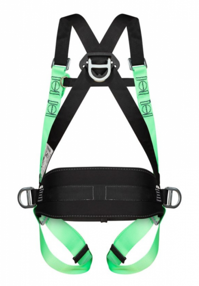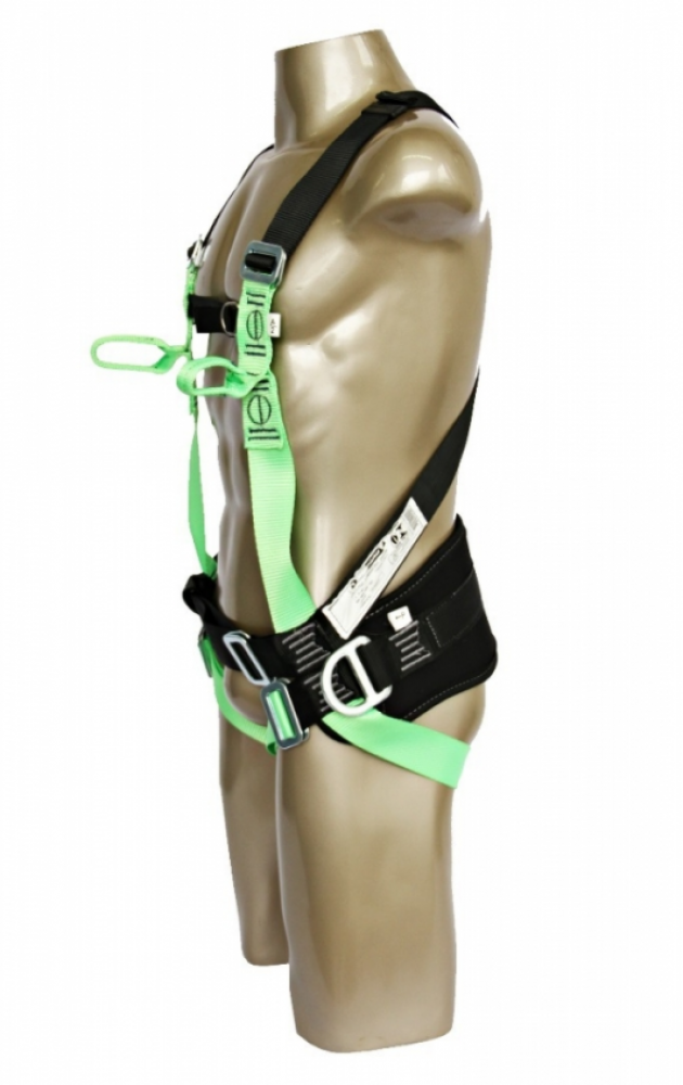 Cinturão de segurança tipo paraquedista/abdominal, confeccionado em fita primária de poliéster de 45mm e fita secundária de poliéster de 25mm. Possui 4 pontos de engate, sendo 1 duplo peitoral em poliéster, 1 meia argola dorsal em aço e 2 meia argola laterais de aço para posicionamento. Dotado de 5 fivelas em aço sem pino para regulagem nas pernas, cintura e suspensório. Proteção em E.V.A. na lombar: (A) 196mm x (L) 750mm. Utilizado com os talabartes e trava-queda de segurança: Talabartes contra queda de altura-Ref.: 8002; 8003; 8009; 8010; 8011; 8020; 8004; 8005; DG 9100; DG 9200 (posicionamento); DG 9300; DG 9400; DG 8015. Trava-queda-Ref.: DG 9000. ESTE EQUIPAMENTO DEVERÁ APRESENTAR O SELO DE MARCAÇÃO DO INMETRO.Confeccionado em fita primária em poliéster de 45mme fita secundária em poliéster de 25mm.Possui 4 pontos de engate, sendo 1 duplo peitoral em poliéster, 1 meia argola dorsal em aço e 2 meias argolas laterais de aço para posicionamento.05 fivelas em aço sem pino para regulagem nas pernas, cintura e suspensório, para ajuste peitoral 01 fivela em D 3mm niquelada.Proteção em E.V.A. na lombar: (A) 196 mm x (L) 750 mm.Fita de poliester 45mm – RE 6321/ Fita poliéster 25 mm – RE 6263.