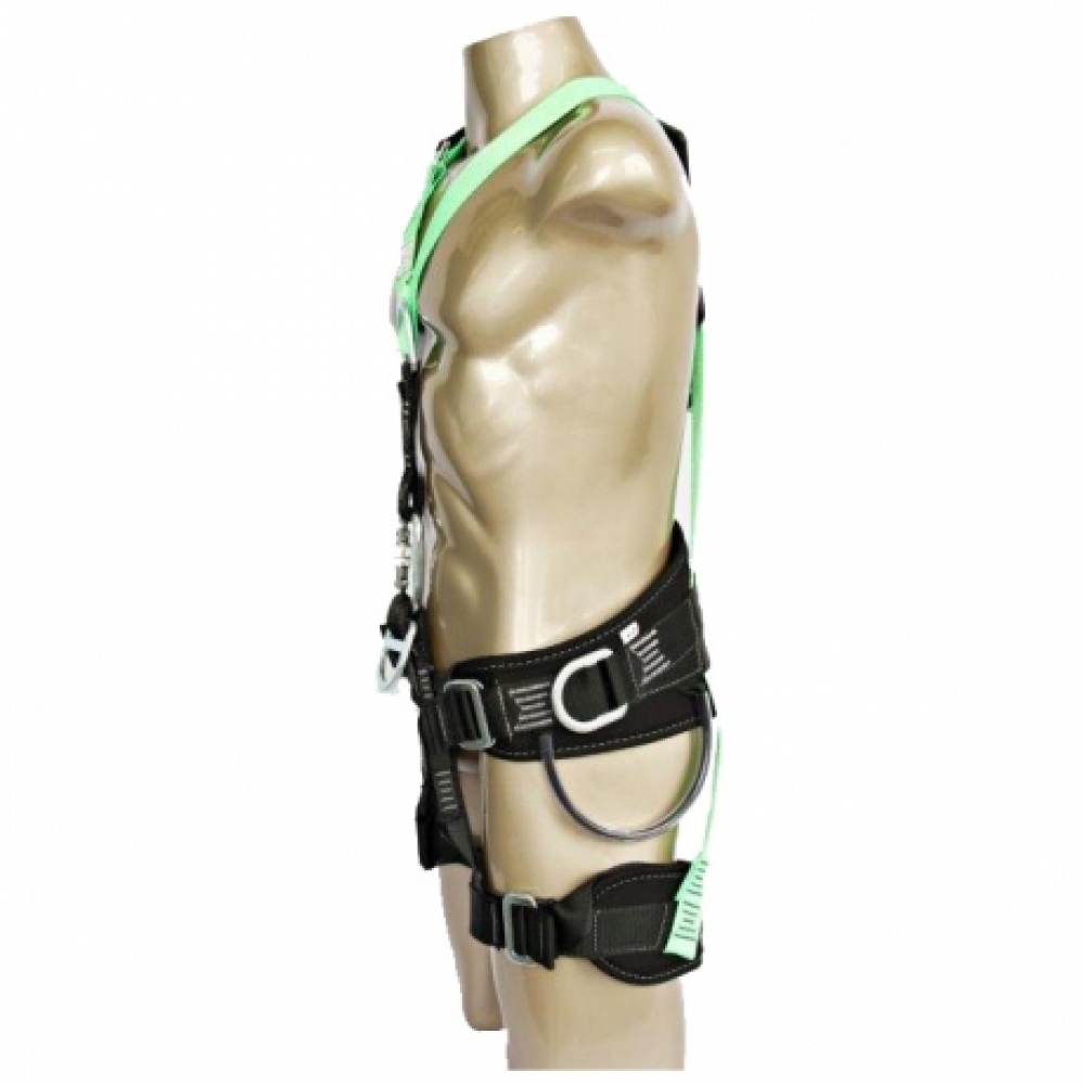 Cinturão de segurança tipo paraquedista/abdominal, confeccionado em fita de poliéster de 45 mm. Possui 5 pontos de engate em meia argolas de aço, sendo 2 nas laterais para posicionamento, 1 dorsal, 1 peitoral e 1 umbilical. Dotado de 6 fivelas em aço sem pino para regulagem nas pernas, cintura e suspensório. Possui porta-ferramentas em mangueira de borracha transparente. Proteção em E.V.A na lombar: (A) 196 mm X (L) 750 mm, e nas pernas: (A) 120 mm e (L) 350 mm - Possui conector Classe B em aço com abertura de 20 ± 5 mm para elo de engate. O cinturão é utilizado com os talabartes e trava-quedas: 1)Talabarte contra queda simples: DG 8002; DG 8003; DG 8011; DG 8015; DG 9300. 2) Talabarte contra queda duplo: DG 8004; DG 8005; DG 8009; DG 8010; DG 8020; DG 9100; DG 9400. 3) Talabarte de posicionamento: DG 9200. 4) Trava-queda deslizante: DG 9000. ESTE EQUIPAMENTO DEVERÁ APRESENTAR O SELO DE MARCAÇÃO DO INMETRO.