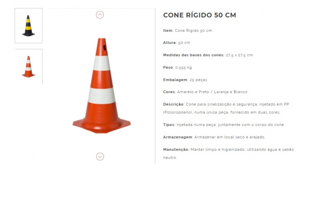 Cone rígido em PVC 50 cm Laranja/Branco e Amarelo/Preto,mais descrições sobre o mesmo nas fotos.
