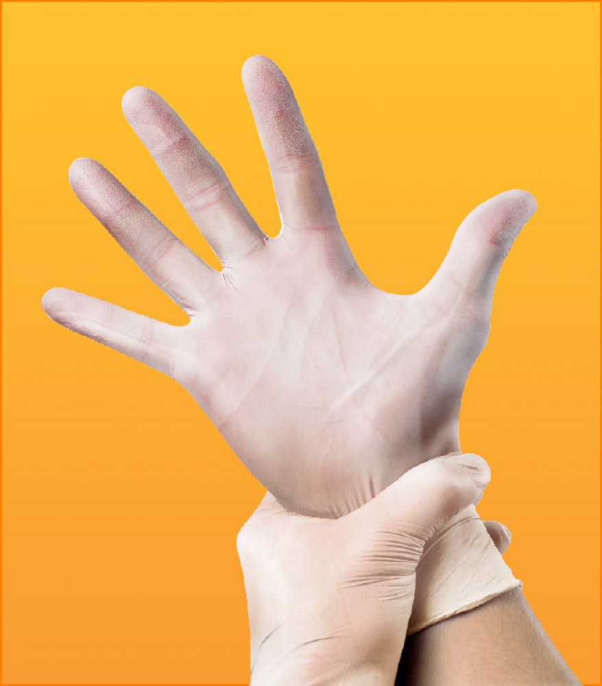 Luva de segurança para proteção das mãos confeccionada em resina de PVC (vinil), ambidestra, anatômica, não estéril, de uso único,sem pó bioabsorvível.