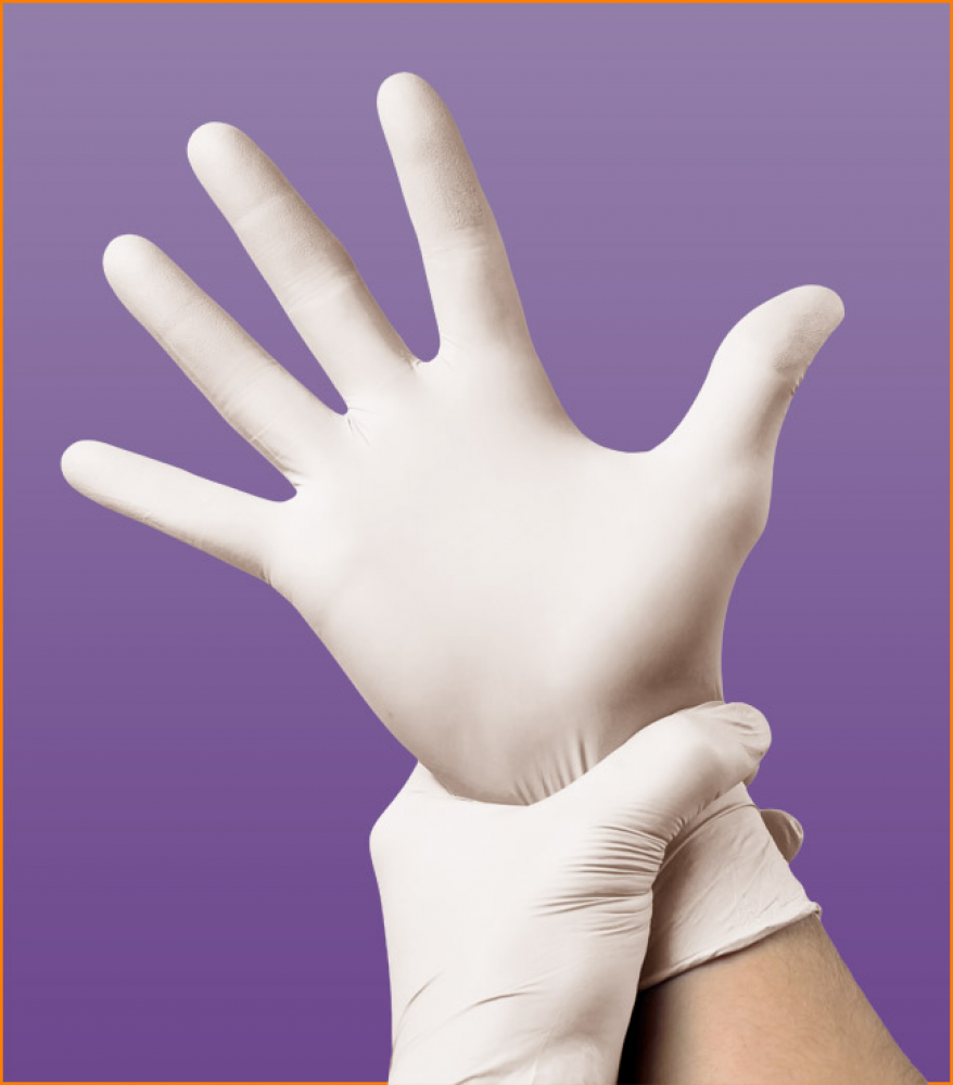 Luva de segurança para proteção das mãos confeccionadas em borracha natural (látex), na cor natural (sem adição de pigmentação), com pó absorvível (talco), não estéril, em moldagem ambidestra, anatômica, palma, dedos e dorso lisos, de uso único.