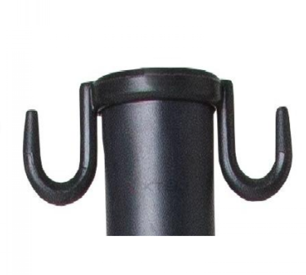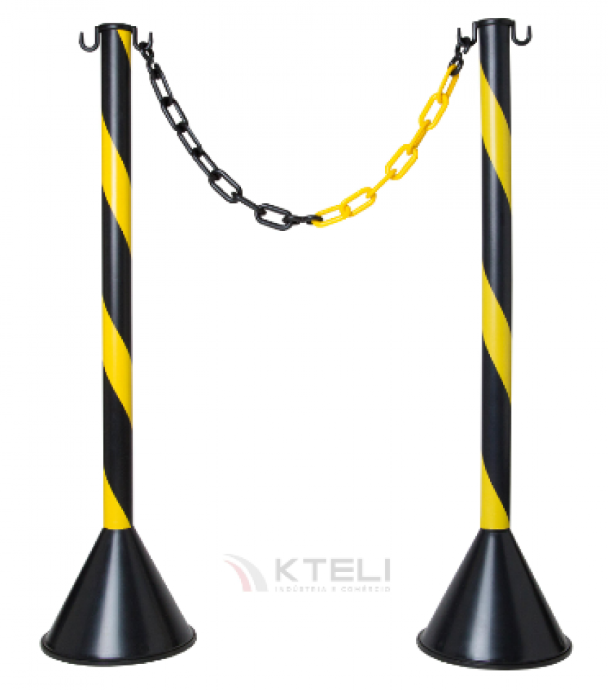Descrição: Pedestal para sinalização e segurança confeccionado em quatro partes (base, tubo em PVC e tampa com dois ganchos constituídos de material resistente).