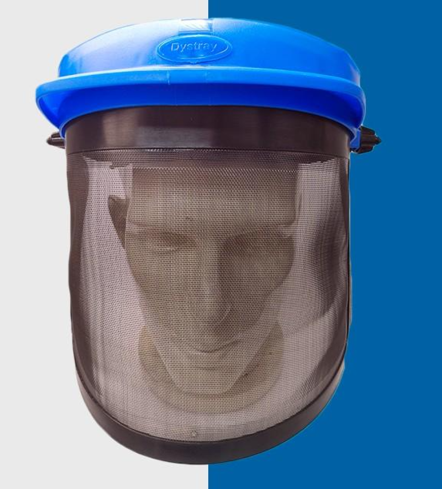Protetor Facial com viseira telada em nylon em ajuste simples ou catraca com 400mm de largura 230mm de altura, aprovado para proteção dos olhos contra impactos de partículas volantes não densas, para atividades que não envolvam risco ao usuário de partículas que podem rasgar a tela.