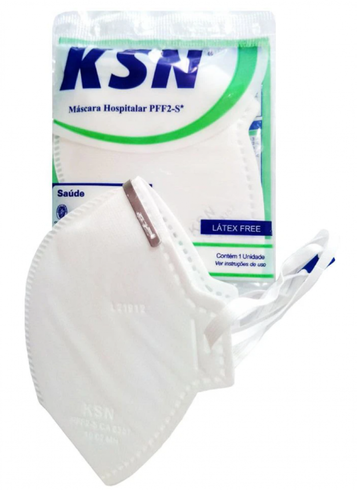 Composição: Confeccionado em quatro camadas, sendo: camada externa de fibra sintética de polipropileno; camada meio de fibras sintética estrutural;camada filtrante de fibra sintética com tratamento eletrostático, camada interna de fibra sintética de contato facial. Com tirantes de cabeça de elástico para sustentação da peça facial e tira metálica para ajuste sobre o septo nasal.Presilha plástica para regulagem e melhor selagem do respirador. Materiais atóxicos e hipoalergênicos.Cor: Branca.