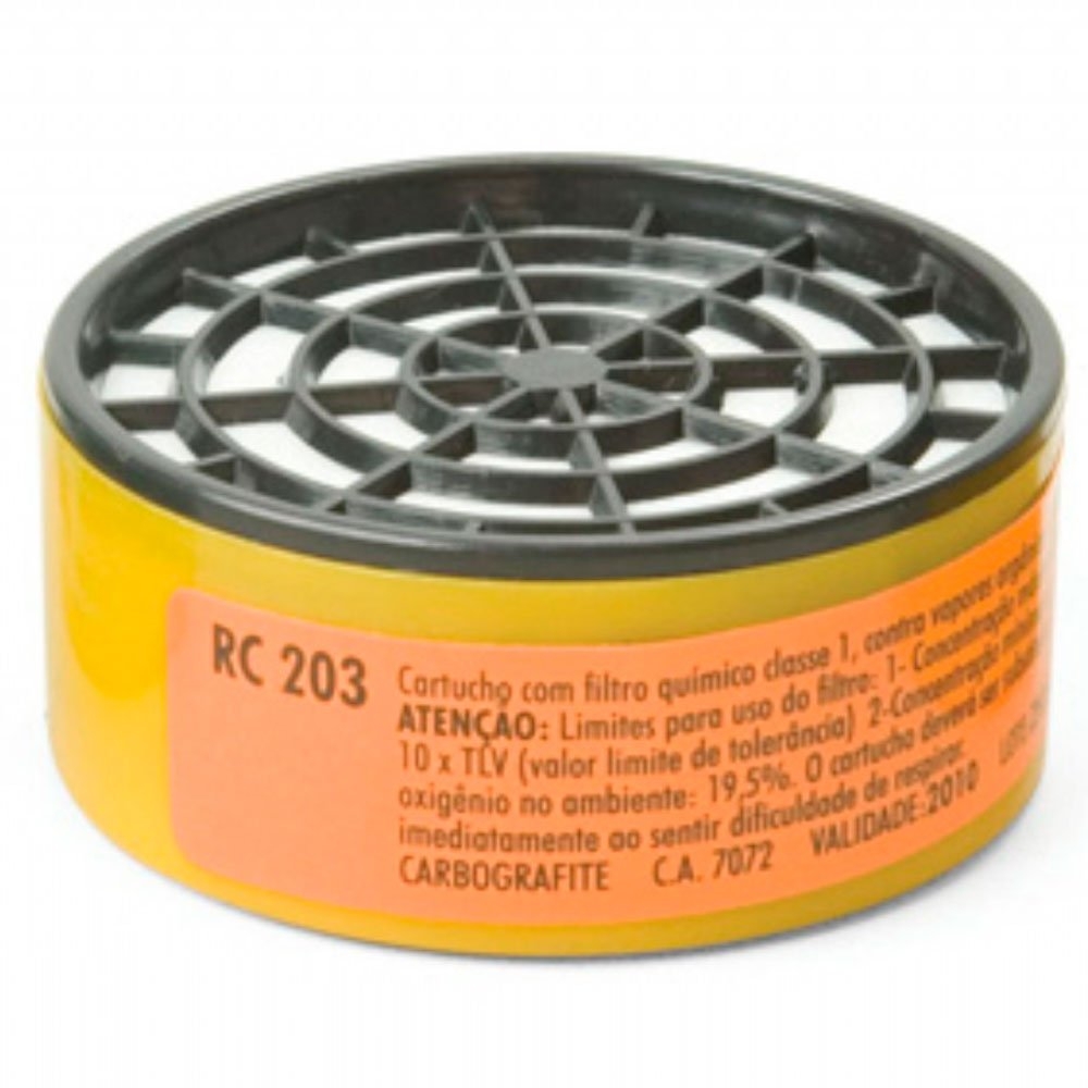 O respirador deve ser utilizado com os Filtros químicos classe 1: RC 202 – vapores orgânicos; RC 203 – vapores orgânicos e gases ácidos; RC 206 – gases ácidos.